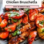 Hi friends! If you're looking for a delicious, fresh, and crazy flavorful weeknight dinner, this easy bruschetta chicken recipe is going to be your new go-to! It's made with juicy boneless skinless chicken breasts, a simple homemade bruschetta topping with ripe cherry tomatoes, fresh basil, olive oil, and finished with a dreamy drizzle of balsamic glaze. This one is bursting with summer vibes and made with simple ingredients you can find at any grocery store!