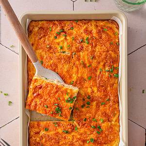 - Let the casserole cool for a few minutes before slicing into portions. Top with chives if using. Serve warm and enjoy!