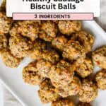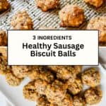 These healthy sausage balls are your new go-to for a quick, high-protein snack, party appetizer, or easy breakfast. Made with just three simple ingredients, they come together in minutes and bake to golden brown perfection. Whether it's game day, Christmas morning, a play date or a busy meal prep weekend, this easy sausage ball recipe is a lifesaver.
