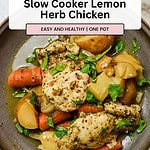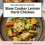 This Slow Cooker Lemon Herb Chicken requires just a few minutes of prep and makes for a great set it and forget it meal! It's an absolutely delicious dinner that is both healthy and balanced. It's also ready in just one pot, which makes cleaning up easy!