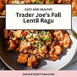 This Trader Joe's Fall Lentil Ragu is made with just 4 ingredients and comes together effortlessly in a few steps in under 15 minutes to make the most perfect healthy and balanced weeknight dinner! Pair this with a side salad to add some additional fiber to this vegetarian dish!